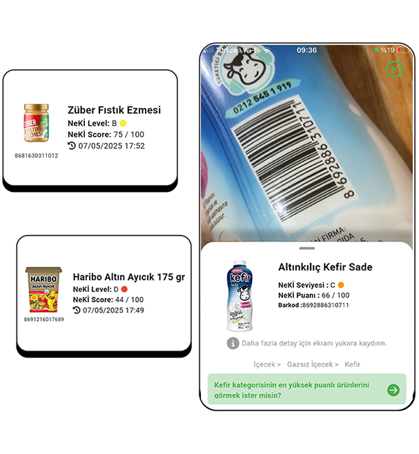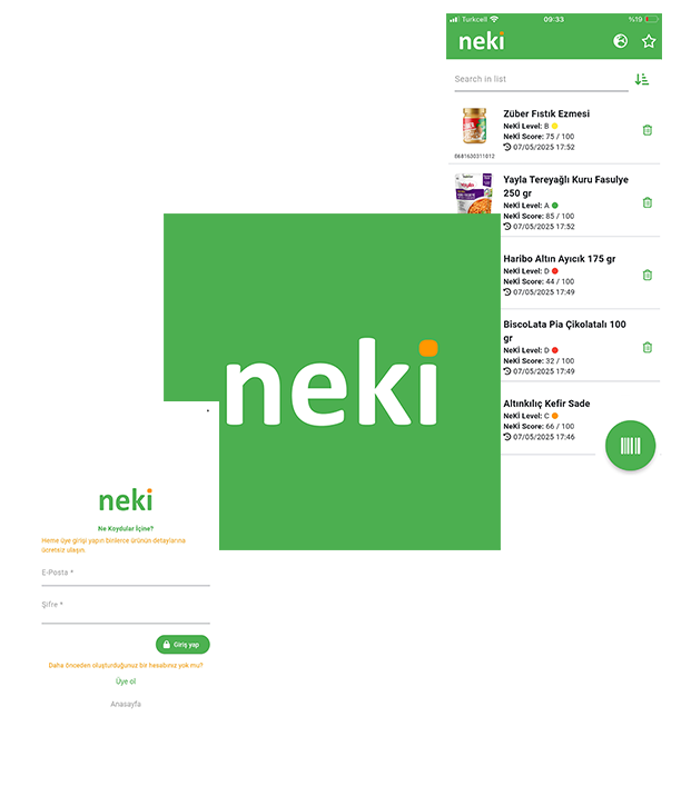 NeKİ; barkod okuma teknolojisiyle, bir ürünün içeriğini saniyeler içinde analiz eder. Katkı maddelerinin ne anlama geldiğini, sağlık açısından taşıdığı riskleri, ürünün palm yağı içerip içermediğini, vegan veya organik olup olmadığını anlaşılır bir dille gösterir.